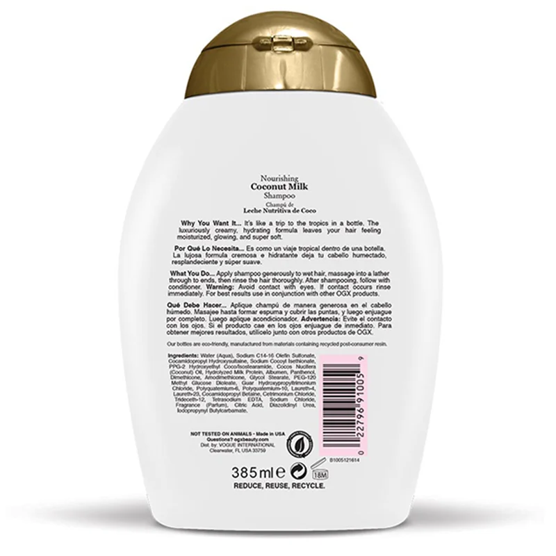 شامپو شیر نارگیل او جی ایکس، انتخابی ویژه برای افرادی است که موهایی نرم، درخشان و خوش حالت را میخواهند و به آبرسانی رشتههای موی خود اهمیت میدهند. ترکیب شاداب کننده و تمیز کنندهی مو در این شامپو موی اصل، حالتی لوسیونی و خامهای مانند دارد. شیر نارگیل و روغن نارگیل ارگانیک، ترکیبات طبیعی ویژهای هستند که علاوهبر خواص بسیار مفید برای مو، رشتههای مو را معطر و درخشان نیز خواهند کرد.