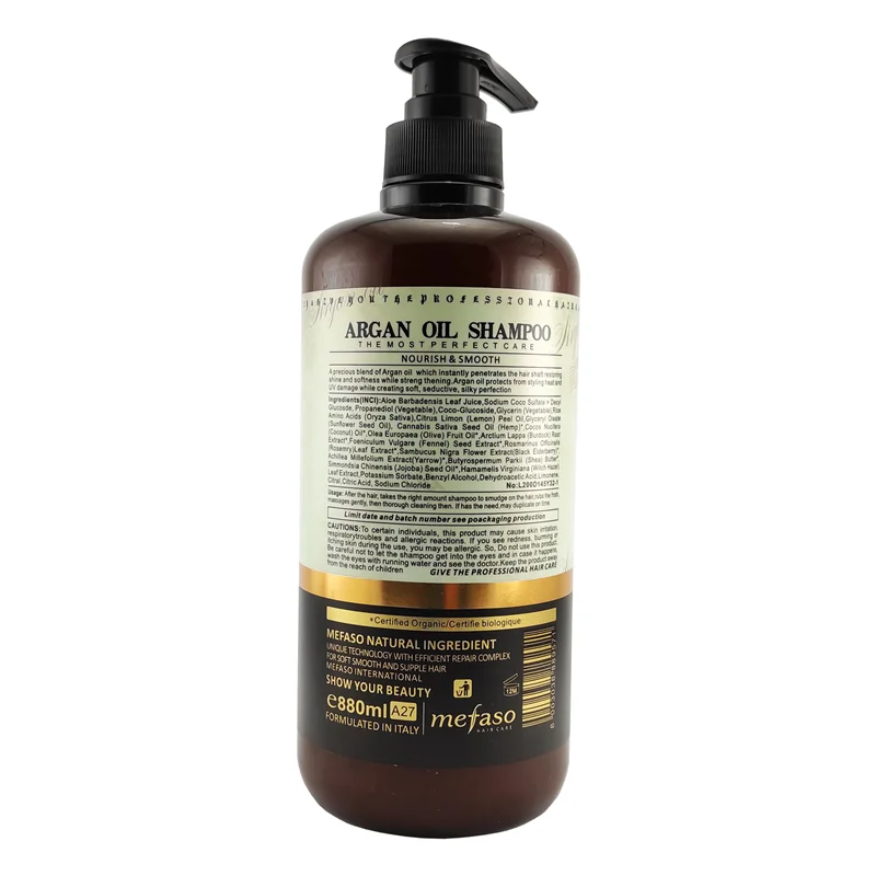 شامپو مو روغن آرگان میفاسو قابل استفاده برای انواع موها و قدرت تمیز کنندگی مطلوبی دارد که چربی اضافه و آلودگی موها را بدون اینکه آسیبی به پوست سر برساند تمیز کرده و با تقویت آن، سلامت کف سر و موها را تضمین می کند. این محصول شوینده طراوت و شادابی بی نظیری به موها هدیه می دهد و رایحه بسیار خوشایندی دارد که پس از شستشوی موها تا ساعت ها شما را همراهی می کند.این محصول از ترکیبات کاملا طبیعی تشکیل شده است و در فرمولاسیون آن از تکنولوژی پیشرفته برای ترمیم کامل موهای آسیب دیده استفاده شده است تا با حفظ رطوبت طبیعی، موها را تمیز کند. پس از شست و شوی موها جلوه کدر و مات موها از بین رفته و موها شاداب و درخشان تر خواهند شد. محصول فوق حاوی روغن آرگان است که سرشار از آنتی اکسیدان و ویتامین C بوده و برای سلامت تارهای مو و پوست سر بسیار مفید می باشد. این روغن منجر به نرم و مرطوب شدن موها می شود و انعطاف پذیری و الاستیته مو را افزایش می دهد؛ بنابراین ظاهری صاف در موها ایجاد می کند و با جلوگیری از وز شدن موها، حالت دادن و شانه کردن آن را بهبود می بخشد.
